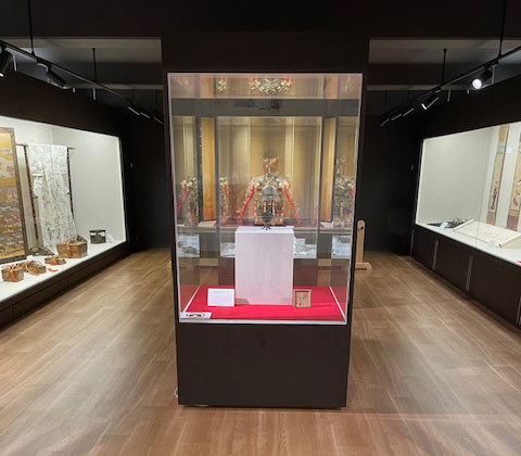 所蔵品は甲冑、刀剣を中心に豪華絢爛の大名婚礼調度、洛中洛外図屏風を始めとする近世初期風俗画、円山四条派を中心とする京都画壇の絵画などです。更に京焼を代表する仁清や乾山の焼き物、頴川や仁阿弥、永楽保全など後期京焼を彩る陶磁器など茶の湯に関連した作品も充実しています。その他絞染や友禅などのあでやかな小袖など収蔵品は多岐にわたっていいます。